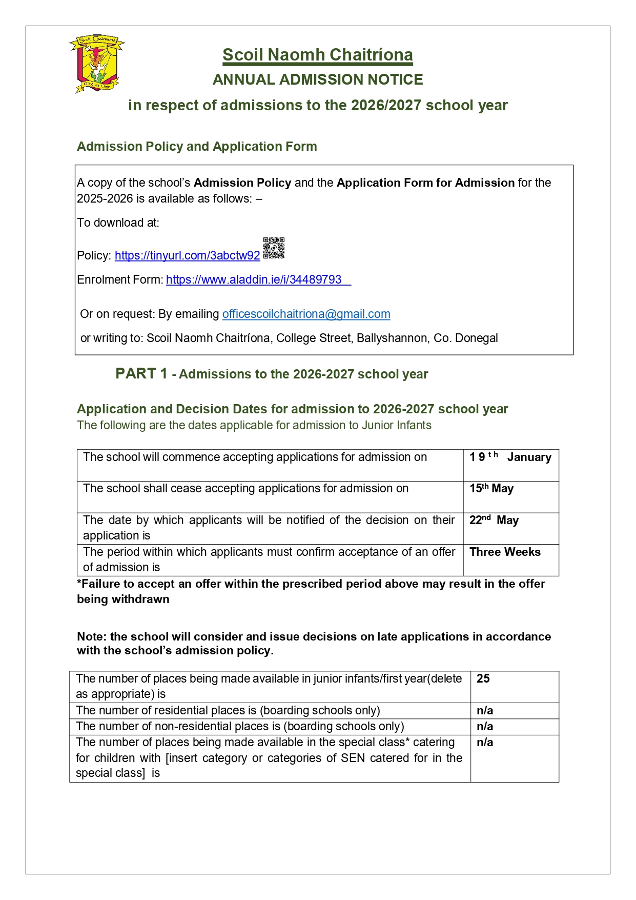 Email: officescoilchaitriona@gmail.com | Phone: 071 9851062